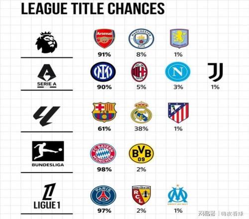 根據《歐洲俱樂部指數》統計機構的分析,歐洲五大聯賽中,有4個冠軍的爭奪基本上沒有懸念,均超過九成,巴黎圣日耳曼和拜仁慕尼黑奪冠機會甚至接近百分之一百,真的是這樣嗎?