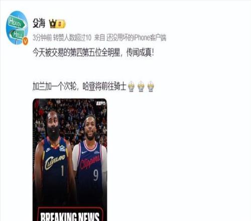 北京時間2月4日,NBA交易市場在截止日前迎來關鍵動作,據知名記者沙姆斯·查拉尼亞報道,洛杉磯快船與克利夫蘭騎士已達成交易,詹姆斯·哈登與達里厄斯·加蘭互換東家。
