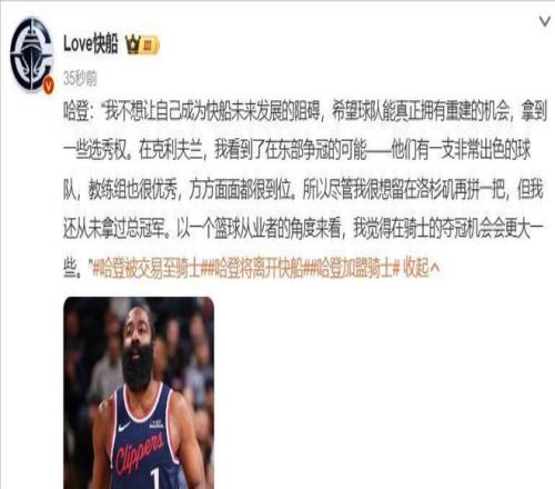 "快船高層真大氣!沒讓登哥當(dāng)眾出丑!"