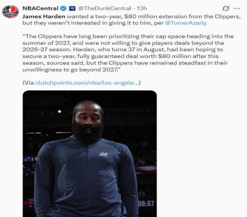 "哈登下賽季才拿1300萬保障?快船這是欺負老將啊!"