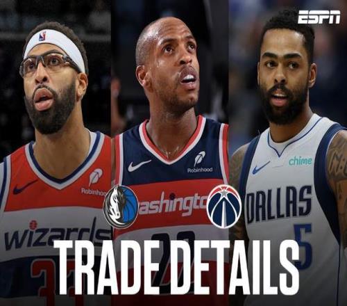 名記Shams報道,獨行俠將濃眉、杰登·哈迪、德安吉洛·拉塞爾以及埃克薩姆送去奇才,換來米德爾頓、AJ·約翰遜、布蘭納姆、巴格利、2個首輪簽和3個次輪簽。