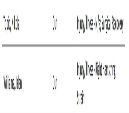 今日的傷病報告顯示,雷霆10個標準合同球員缺陣:卡魯索、吉昂(未隨隊)、多特、亞歷山大、哈滕、切特、米切爾、索伯、托皮奇和杰倫威。