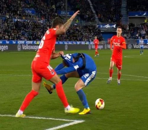 不過在比賽的第64分鐘,皇家社會一度陷入絕境,因為皇家社會后衛卡萊塔-卡爾在禁區內用一個非?;膭幼魉土艘粋€點球。