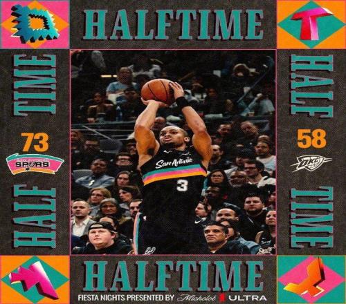 次節比賽,馬刺連續兩節得分30+,雷霆也首次單節得分30+展開對攻。馬刺內外開花碾壓殘陣雷霆,在前3分20秒馬刺一波13-4攻勢壓制,已經擴大52-30領先雷霆22分優勢。雷霆連續外線三分命中,打出一波18-6攻勢追到差10分,雷霆再度多點開花擴大領先優勢,馬刺單節34-32凈勝2分,上半場比賽結束馬刺73-58領先雷霆15分優勢。