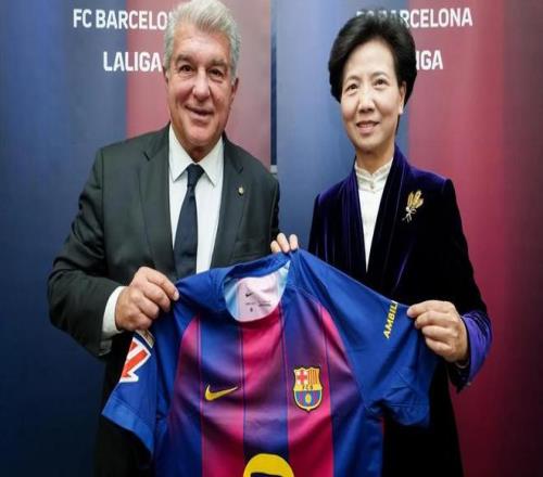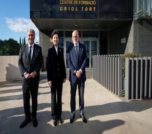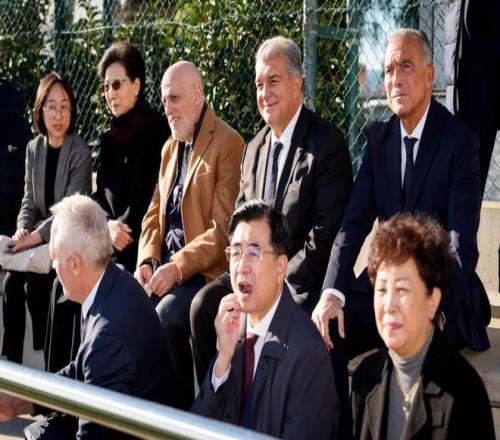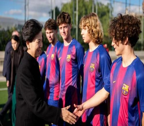 巴塞羅那足球俱樂部主席拉波爾塔與西甲聯(lián)盟主席特巴斯,共同歡迎由中國國務(wù)委員諶貽琴率領(lǐng)的中國代表團訪問巴薩拉瑪西亞青訓(xùn)營。