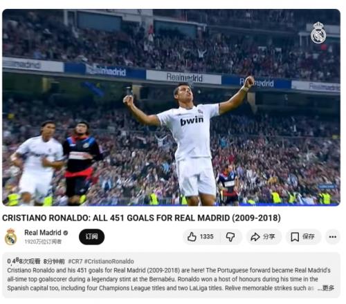 體育播報02月05日宣 今日是C羅41歲的生日,皇馬官方發布了C羅在皇馬生涯的全部451粒進球視頻。