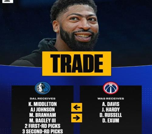 從奇才換到:米德爾頓、AJ·約翰遜、布蘭納姆、巴格利,附加2個首輪 + 3個次輪。