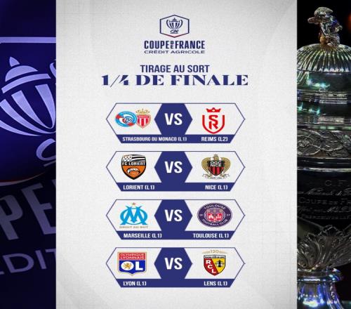體育播報2月6日宣 法國杯1/4決賽對陣情況出爐,其中馬賽將和圖盧茲交手,而里昂則會對陣朗斯。