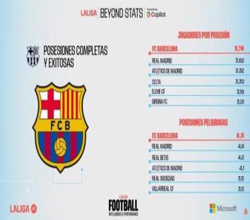 根據西甲官方列出的統計數據,巴薩是本賽季西甲射門轉化率最高的球隊,也是控球涉及人數、創造威脅次數最多,成功阻止對手射門比例最高的球隊。
