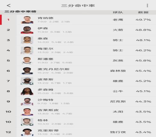 肯納德合同1年1100萬美元,今年夏天到期。肯納德職業(yè)生涯三分命中率高達(dá)44.2%,位列NBA歷史第二,僅次于勇士主帥史蒂夫-科爾(45.4%)。