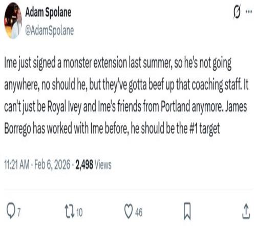 賽后火箭記者Adam Spolane對此點評道:“烏度卡去年才與火箭簽下巨額長約,所以他哪也不會去,但他必須補強助教團隊,不能只是靠艾維和烏度卡從波特蘭帶來的那幫朋友了,博雷戈曾與烏度卡共事過,他應該是頭號目標人選。”