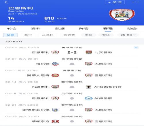 巴恩斯利目前排名英甲第14位,球隊的戰績為26場10勝7平9負。