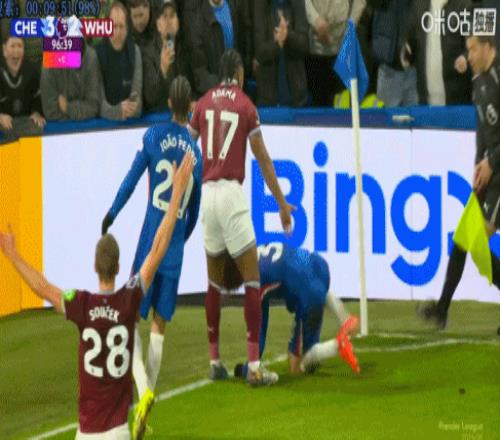 體育播報2月6日宣 在切爾西3-2戰勝西漢姆聯隊的比賽尾聲階段,當時庫庫雷利亞在角旗區附近嘗試護球,被特勞雷放倒。切爾西邊鋒若昂·佩德羅又推搡了特勞雷,兩隊發生沖突。