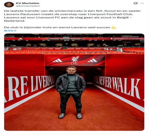 比利時俱樂部梅赫倫發布公告,確認球探勞倫斯·保盧森正式轉投利物浦俱樂部,將擔任利物浦俱樂部在比利時、荷蘭地區的球探,梅赫倫俱樂部祝保盧森未來一切順利。