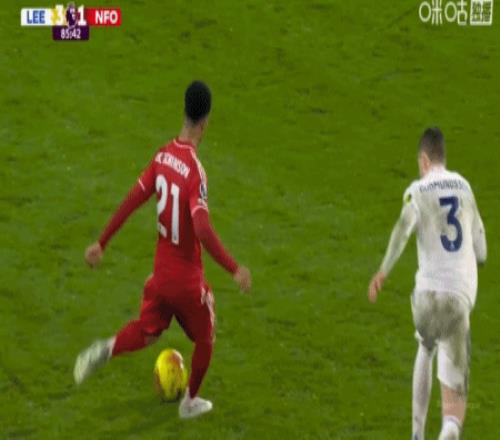 第30分鐘,賈斯廷助攻,奧卡福爾推射破門,利茲聯2-0諾丁漢森林