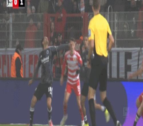 第84分鐘,布朗凌空抽射破門打破僵局,法蘭克福1-0柏林聯合