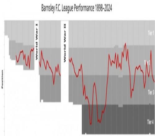 巴恩斯利只有一次英超之旅,但也從未跌落至第四級別以下的非職業聯賽,大部分時間內都在英冠和英甲賽場徘徊。