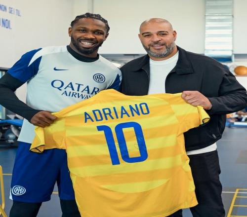 國米ins曬小圖拉姆和阿德里亞諾合影:圖拉姆向前輩索要簽名
