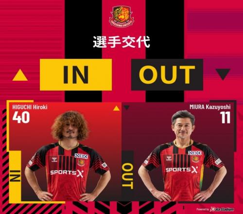 據日媒“中日體育”、Sponichi等的報道,本場比賽三浦知良出任三前鋒的居中位置,比賽中也有鏟搶、參與前場進攻的畫面,但最終沒有形成射門,比賽第20分鐘時被隊友樋口寬規換下。