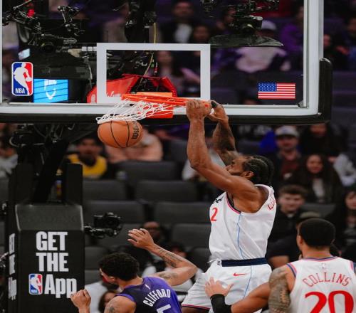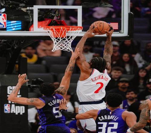 國王隊的蒙克得到9分;快船隊的萊納德得到14分、4個籃板和3次助攻,科林斯得到10分和5個籃板。