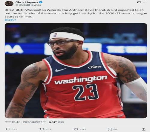 北京時間2月7日中午,據NBA名記Chris Haynes報道,奇才球星安東尼-戴維斯因為手部和腹股溝傷病,本賽季正式報銷,有望在2026-27賽季完全康復。濃眉(5413萬美元)與特雷-楊(4639萬美元),本賽季薪水合計1億美元!
