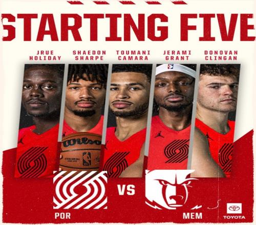 體育播報2月7日宣 開拓者主場迎戰灰熊,賽前首發陣容出爐。