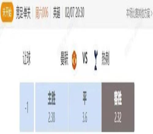 初始曼聯主場讓0.75高位起步,目前升至主讓一球高位;兩隊目前排名和積分差距較大,但初始直接給到曼聯0.75的主場讓步還是過深了,后市升到一球更是無視熱刺的實力和市場人氣,雖然熱刺近期狀態低迷而曼聯三連勝且連斬強敵,但熱刺客場戰績不俗且上一輪也剛剛逼平了曼城,加上索蘭克等人有可能復出,一味強拉曼聯并不可信并且有走熱的跡象;歐洲方面,目前平局已經頂高到了4.20,同樣無法分散主勝熱度,因此綜合考慮,本場阿飛看好熱刺客場不敗。