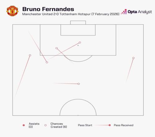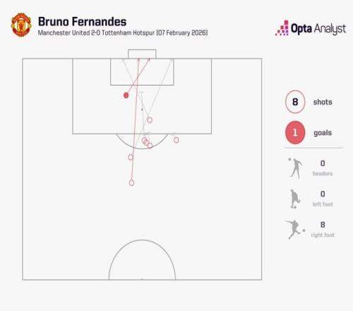 英超第25輪,曼聯主場2-0擊敗熱刺,本場比賽曼聯隊長布魯諾-費爾南德斯參與了14次射門,這是自2024年10月的薩卡以來,任何球員英超單場最多。