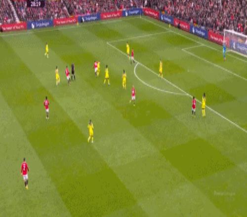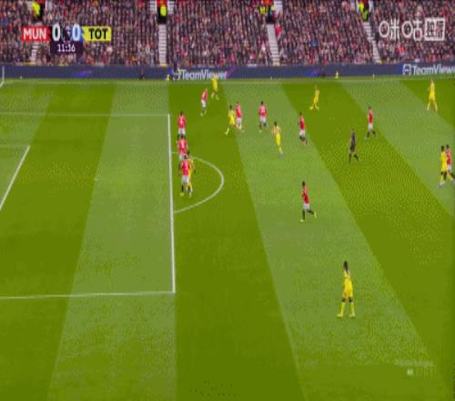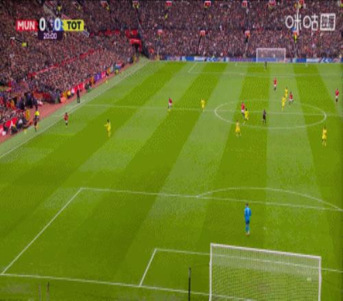 第37分鐘,曼聯角球配合,姆伯莫推桿破門,曼聯1-0領先熱刺!