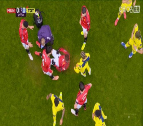 第29分鐘,羅梅羅蹬踏卡塞米羅腳踝被裁判直紅罰下!熱刺10人應戰