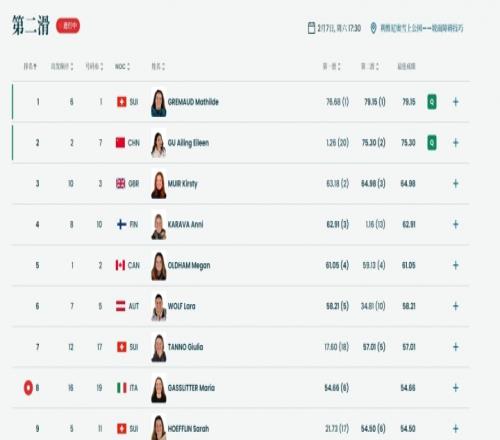 晉級規則:預賽共26名選手參賽,所有選手進行兩輪滑行,取單輪最佳成績排名,總排名前12名晉級決賽。決賽將于北京時間2月9日19:30進行。
