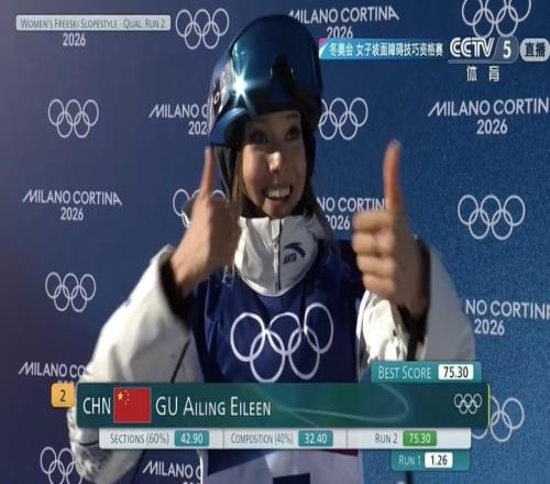 體育播報02月07日宣 米蘭冬奧會自由式滑雪女子坡面障礙技巧預賽,谷愛凌第二滑流暢完成,獲得75.30分位列自由式滑雪女子坡面障礙技巧預賽第二晉級決賽。