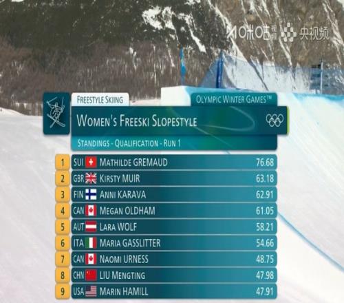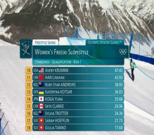 劉夢婷第18順位出戰順利完成第一滑,雪道上展現出穩扎穩打的競技狀態,獲得47.98分。目前排在第8位。