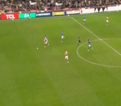 第93分鐘,內爾高大腳解圍,馬丁內利帶球長途奔襲,禁區內冷靜橫敲,哲凱賴什輕松推射空門得手,完成梅開二度好戲,阿森納將比分鎖定在3-0!
