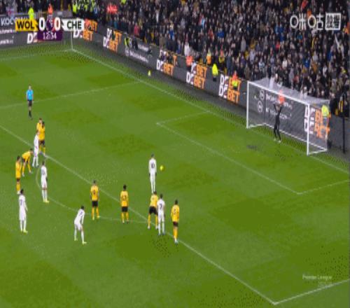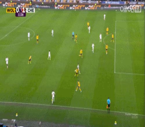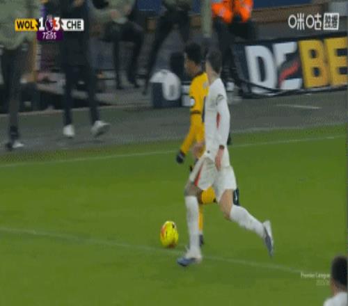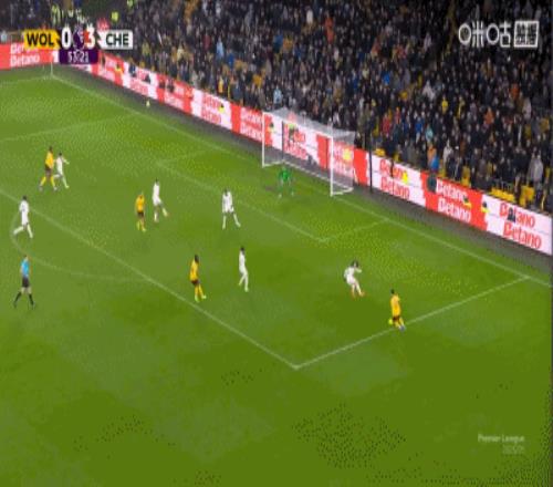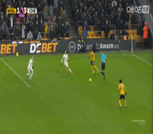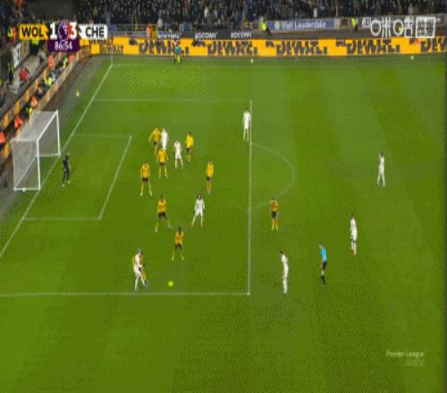 第54分鐘,扳回一城,阿羅科達(dá)雷轉(zhuǎn)身破門,狼隊(duì)1-3切爾西