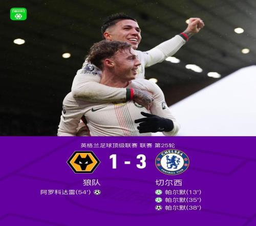 北京時(shí)間2月7日英格蘭足球頂級聯(lián)賽第25輪,狼隊(duì)主場對陣切爾西。上半場,若昂-佩德羅兩次造點(diǎn),帕爾默點(diǎn)球雙響+破門完成帽子戲法,下半場,阿羅科達(dá)雷扳回一城。最終比分狼隊(duì)1-3切爾西。