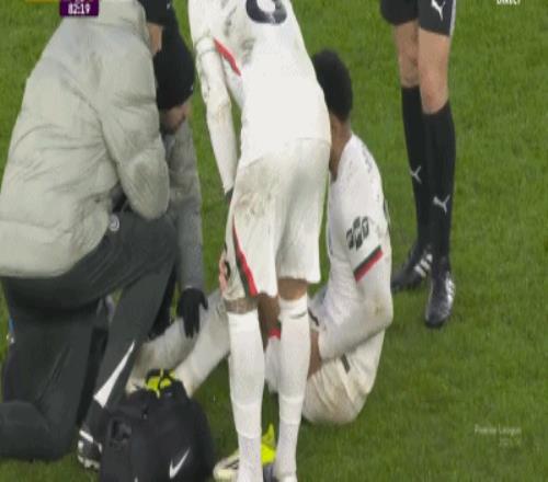 第70分鐘,古斯托與對手對抗,隨后倒在禁區(qū)接受治療