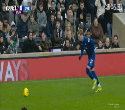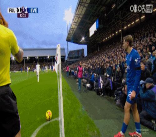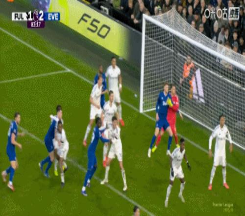第82分鐘,埃弗頓角球機會,萊諾自擺烏龍,富勒姆1-2埃弗頓
