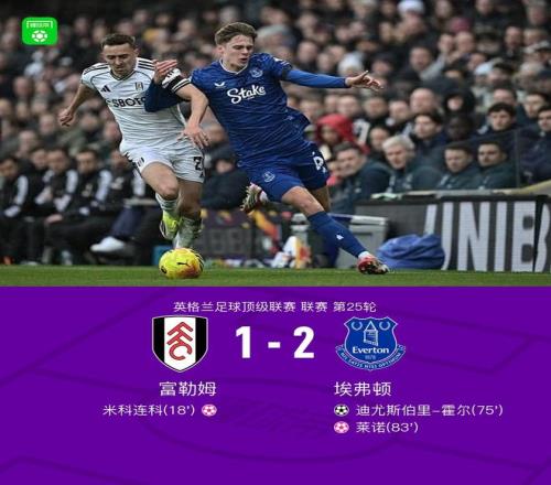北京時間2月7日英格蘭足球頂級聯賽 聯賽 第25輪,富勒姆主場對陣埃弗頓。富勒姆萊諾自擺烏龍。上半場埃弗頓迪尤斯伯里-霍爾破門,下半場米科連科自擺烏龍,門將萊諾自擺烏龍。最終比分富勒姆 1-2 埃弗頓。
