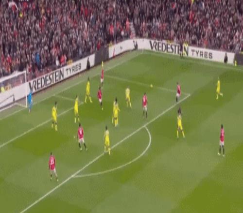 第37分鐘,紅魔打出精妙的角球戰(zhàn)術。B費低平球開到前點,梅努不看人回敲,姆伯莫中路包抄推射遠角得手,曼聯1-0領先;對熱刺而言,姆伯莫堪稱噩夢。