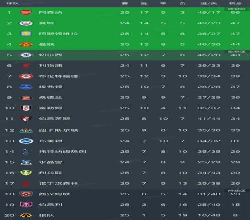英超最新積分榜