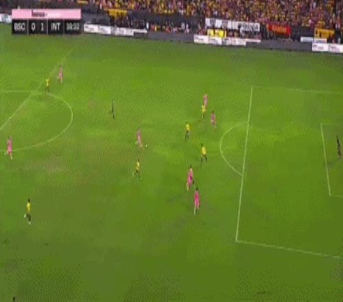 第31分鐘,梅西長距離帶球后連過兩人破門,邁阿密國際1-0領先