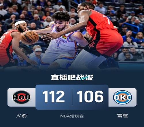 比賽開始,火箭開場8-2領(lǐng)先,雷霆輪番沖擊內(nèi)線頻頻得手,打出7-0的攻擊波反超比分,謝潑德穩(wěn)定輸出幫助球隊咬住,次節(jié)火箭連續(xù)打鐵失誤,雷霆內(nèi)外開花逐漸占據(jù)場上主動,以賽亞·喬高效拿分,半場戰(zhàn)罷雷霆52-46領(lǐng)先火箭。易邊再戰(zhàn),火箭外線開炮連續(xù)三分命中反超比分,雷霆連投帶罰穩(wěn)住局勢,末節(jié)以賽亞·喬反擊得手再度將雙方拉回同一起跑線,關(guān)鍵時刻伊森連投帶罰拿分,杜蘭特中投也有,雷霆苦苦追趕無果。最終,火箭112-106力克雷霆,結(jié)束了自己的2連敗。