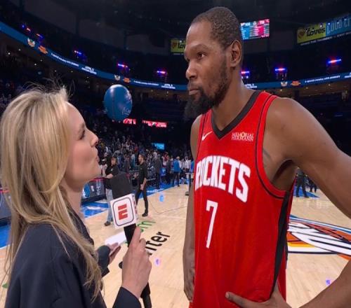 體育播報2月8日宣 NBA常規賽,火箭在客場以112-106擊敗雷霆。賽后杜蘭特接受了采訪。