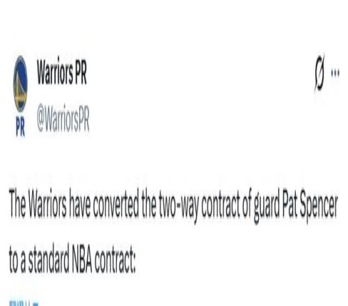 勇士在交易截止日后,陣容原本有兩個正式名額空缺。在將斯賓塞合同轉(zhuǎn)正后,球隊目前還剩一個正式名額以及一個雙向合同名額。
