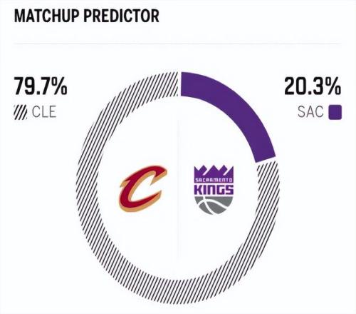 賽前,美媒ESPN對本場比賽進行了預測,騎士勝率高達79.7%,國王勝率僅有20.3% ,差距非常明顯。