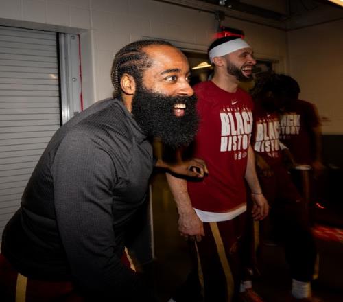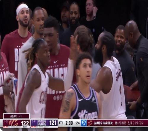 當哈登命中關鍵三分打停國王后,騎士全隊都過來跟哈登鼓掌,36歲的哈登還是很受歡迎的,怪不得米切爾很憧憬跟登哥合作。此役米切爾拿到35分4助攻,阿倫拿到29分10籃板,很舒服。