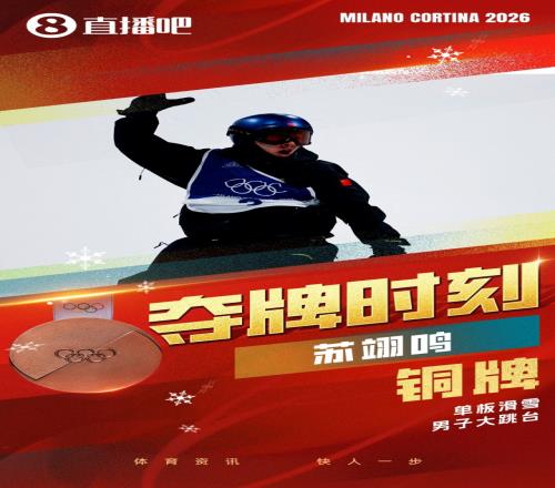 體育播報(bào)2月8日宣 米蘭冬奧會(huì)單板滑雪男子大跳臺(tái)決賽,蘇翊鳴總分168.5分獲得銅牌,為中國代表團(tuán)奪得本屆冬奧會(huì)...