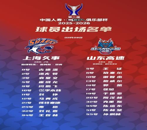 體育播報2月8日宣 今晚19:30,俱樂部杯半決賽, 上海vs山東。賽前大名單出爐。