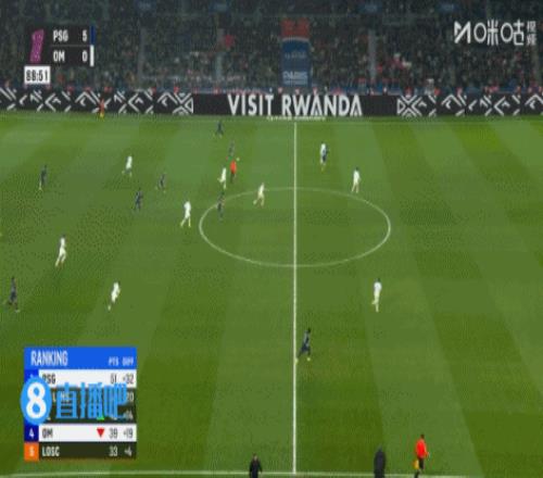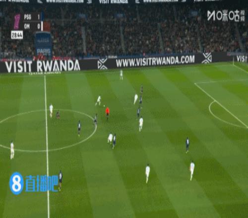 第54分鐘,格林伍德前場右路被搶斷,隨后巴黎快速反擊,最后杜埃包抄射門沒能踢正,出了底線。↓